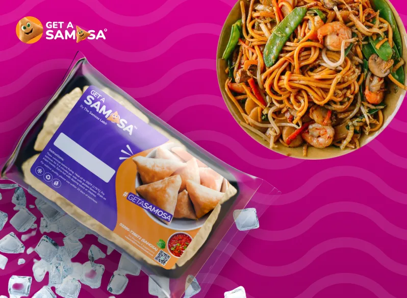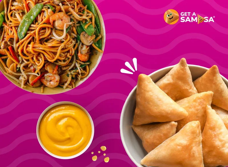 Flavorful noodles and fresh veggies encased in a crunchy samosa shell.